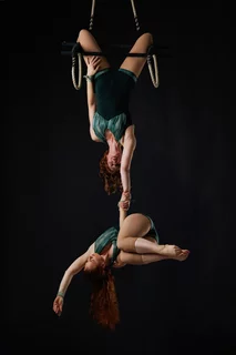 Anna und Ida haben neben ihren Duo-Acts verschiedene Solo-Showacts am Tanztrapez, Vertikaltuch oder Flying Pole im Repertoire.